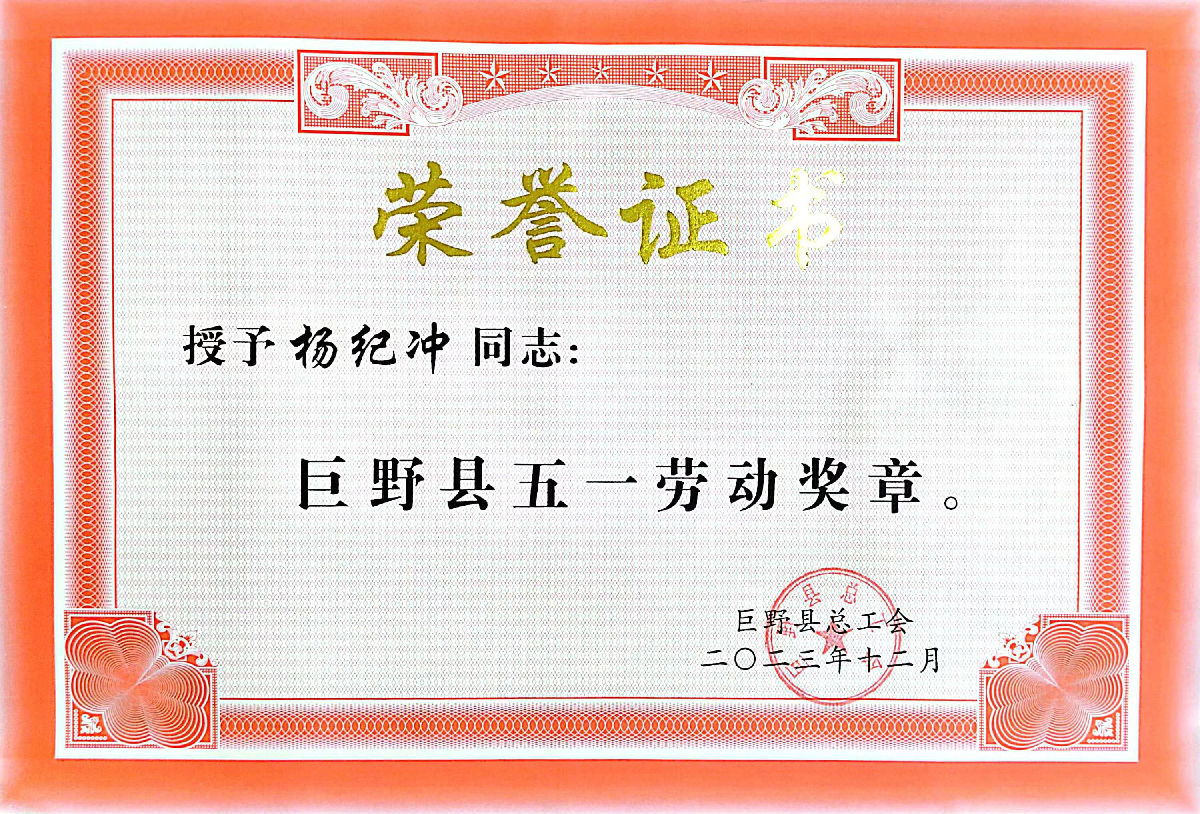 山東聚祥機(jī)械股份有限公司——員工榮譽(yù)